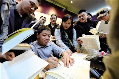 眾多的讀者圍著《尋找·蘇慧廉》作者沈迦要求簽名。楊冰杰攝